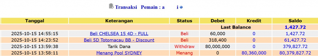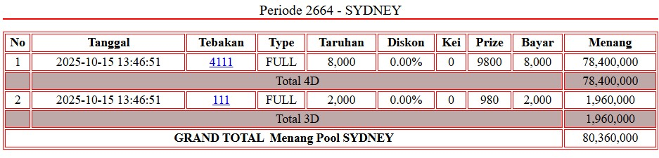 Selamat untuk kemenangan member setia Dingdong Togel dengan user ID : axxxxxi telah JP besar di Permainan togel SYDNEY.