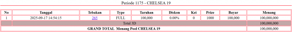 Selamat untuk kemenangan member setia Dingdong Togel dengan User ID : m****2 telah JP besar di Permainan POOL CHELSEA 19